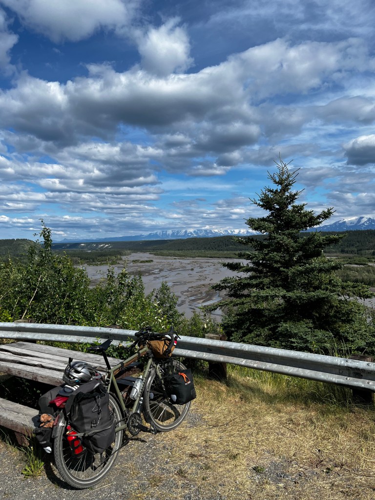 Before I left Cantwell I got chatting to a guy at a food truck, another Chris. He was on a three week solo hunting and fishing trip, camped out somewhere down the road I was about to ride. He’d not been killing much since he was eating the steak special so we joked about that but I asked him about the magnum caliber handgun he was carrying. He was hunting of course but It seems that’s how most people operate around that area due to the very high chance of bear encounters. He let me know where his camp was, eluding to the idea that if I got into any trouble I’d know where to find him.