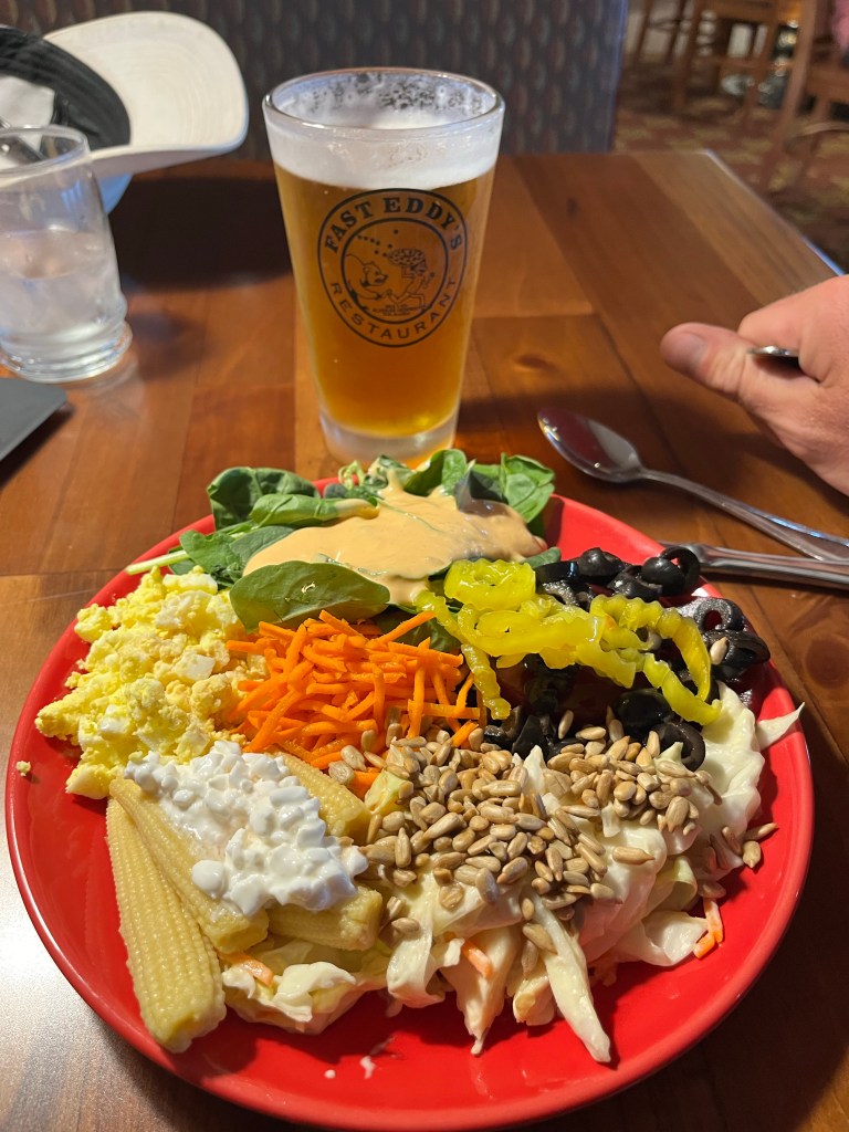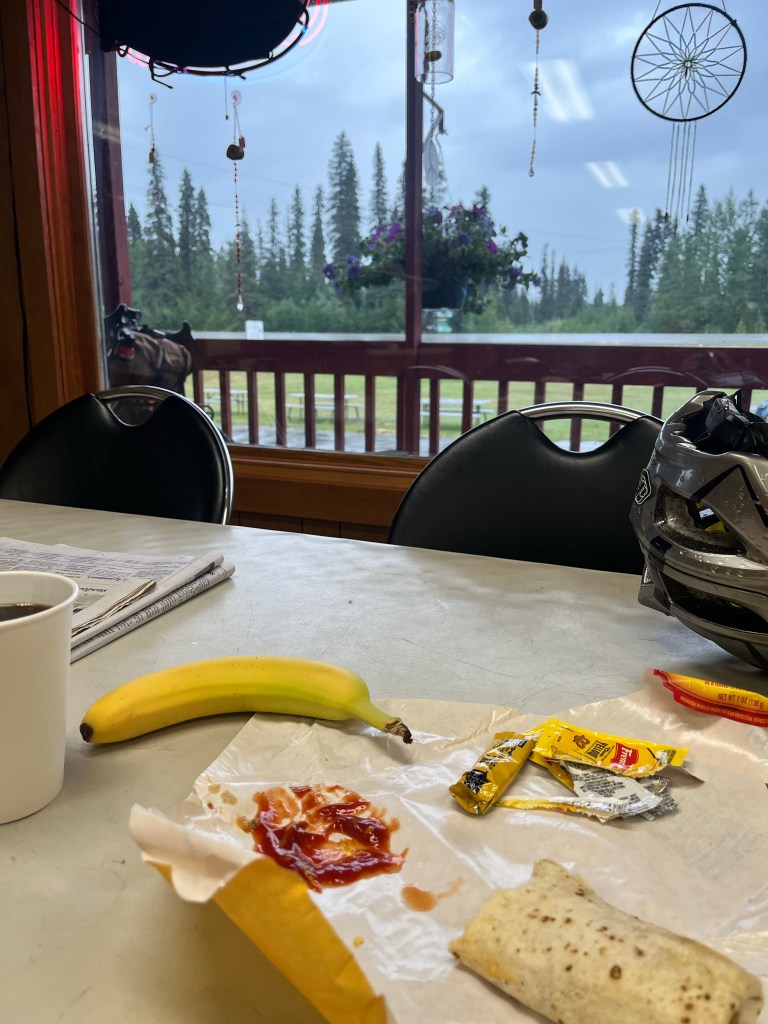 These were all long days riding really and without regular good meals so arriving in Tok I was extremely keen to eat well. Fast Eddie’s was the place to go and America portions were what I needed.