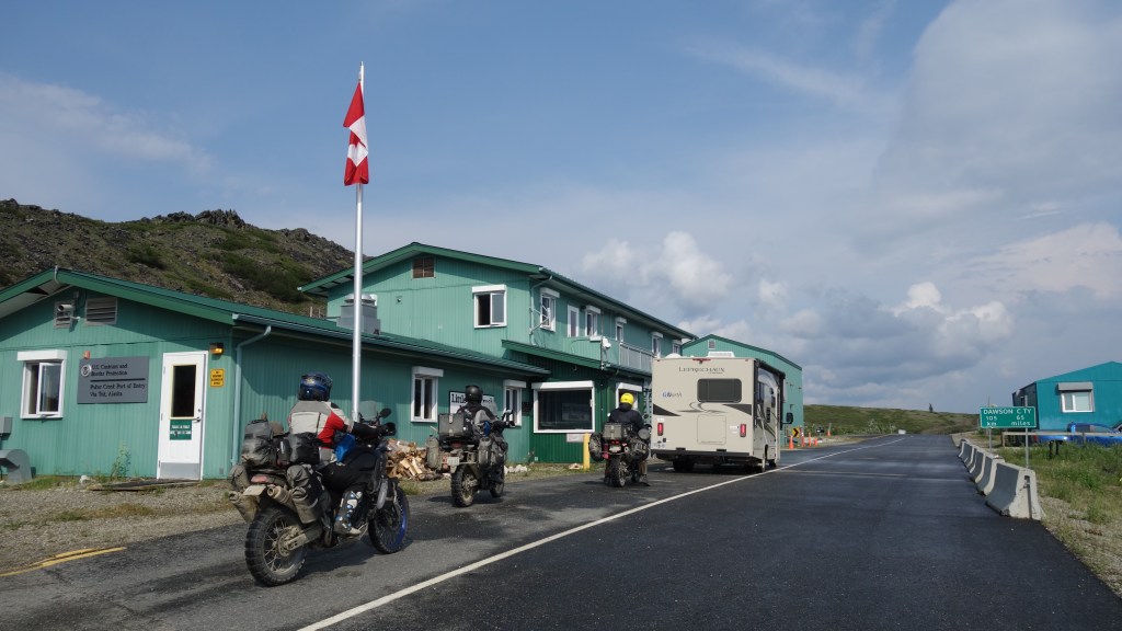 Crossing was easy breezy into Canada, filling out my digital ArriveCAN form at the office there was no problem. After a cheeky photo at the big blue Yukon sign I could relax and ride on towards Dawson City. The nice paved stuff was done now and it’s back to loose gravel all the way. Some motorbikers had told me it was horribly rough on this section and be prepared to walk, it was slow going ups and downs but nothing too challenging.