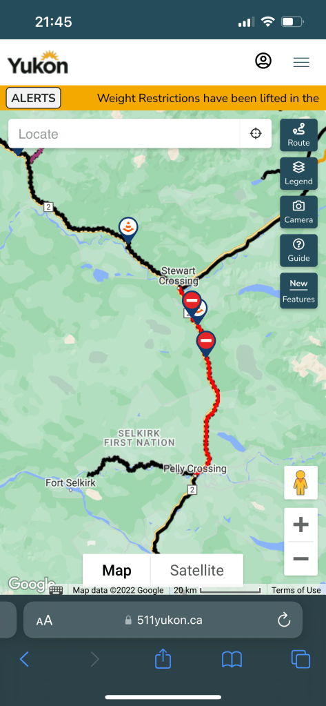 The trouble was, there was big news in the area that the only road after Dawson City south through the Yukon was strictly closed due to forest fires. I’d seen some photos and it was clearly well out of hand. Of course I had to take this literally and needed to expect that It could still be closed after spending five days or so getting there. I’m thinking I might have to travel all the way back to the Tok junction which would suck.
