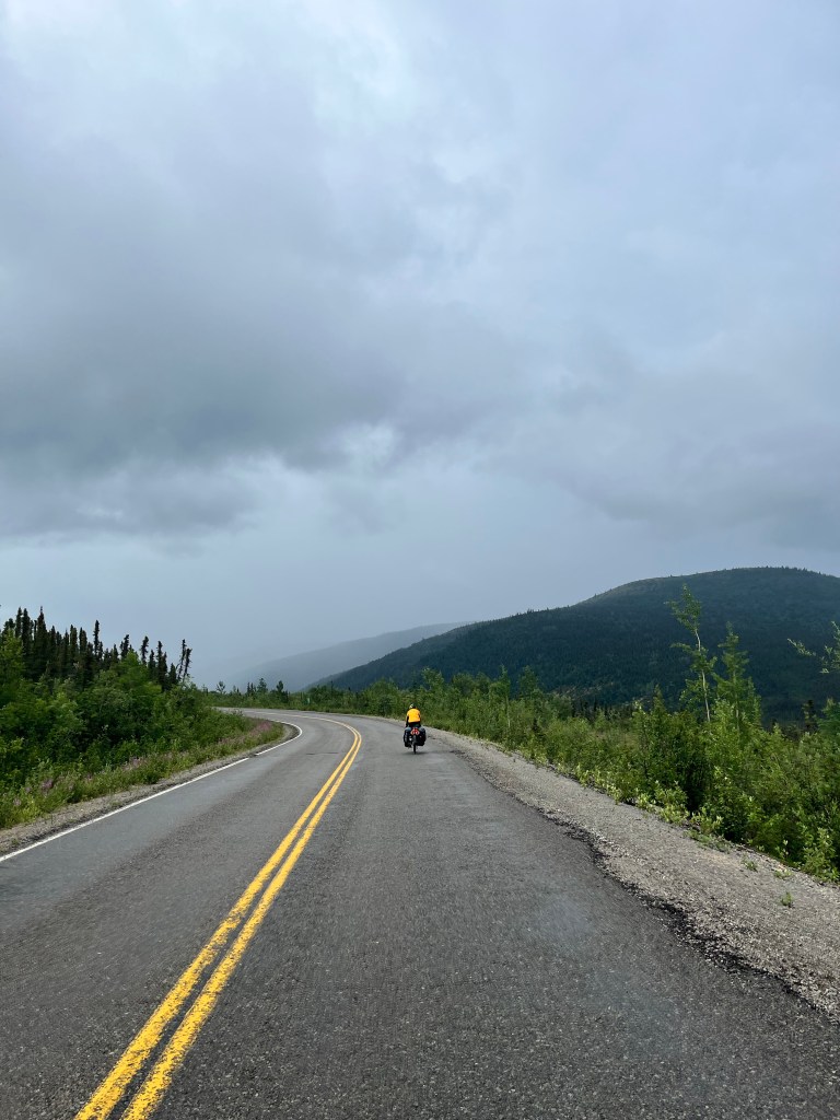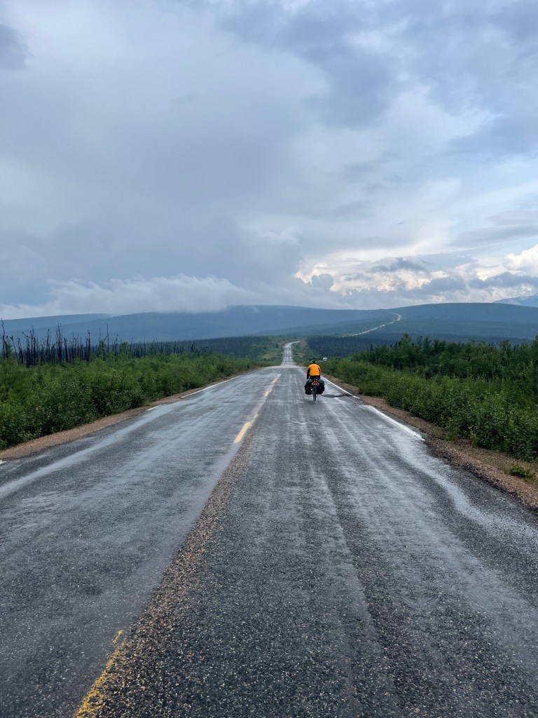 Day off in Dawson to wash clothes, float around and eat food was bliss. Lots more rain came too so it felt good being off the hill for that but I was thinking of Robyn back there on the same road having to deal with it all. She managed to get a message back to me after a few days and made it through ok just very wet!