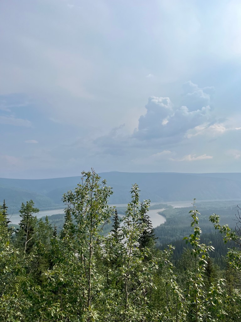 It was kind of only 60km as the last 20km was a dreamy long downhill to the Yukon River at Dawson. Big epic descent and it was tad scary handling the loaded bike at speeds on gravel so that perked me right up.