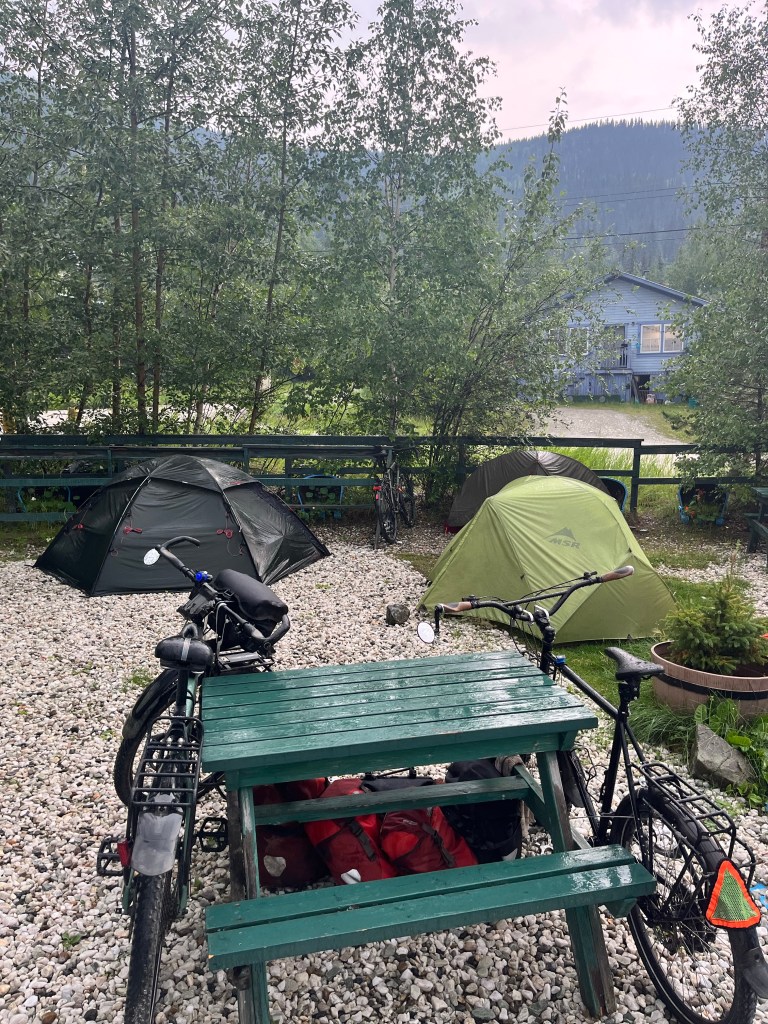 This is where I met Pete and Larry, other bike tourers. I got waved down by Pete near the site and he kindly offered to share their pitch since the $30/night was steep. Sound chaps and we cooked and chatted into the evening about our trips. Unfortunately Larry had knee issues and Pete had major bike problems from the recent expedition so were having a good break in Dawson.