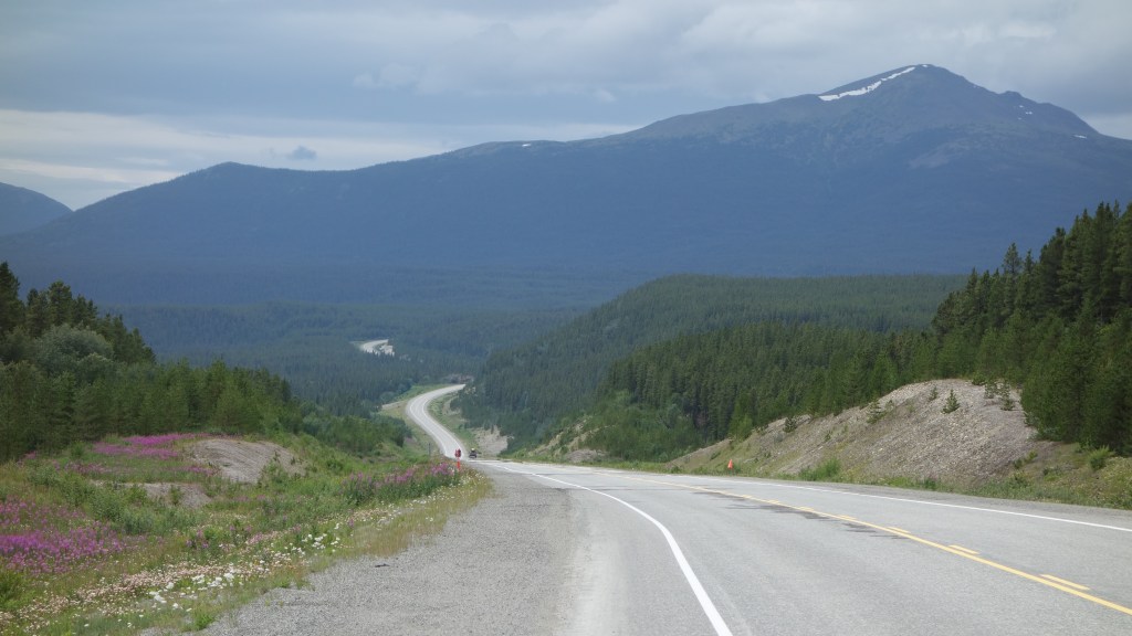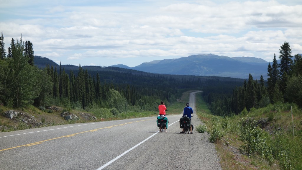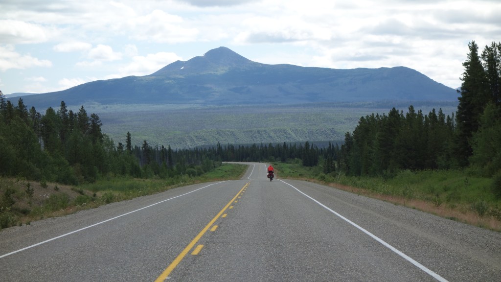 I was feeling on form after my day off and a tummy full of cake, the kilometers were flying by again. Thankfully the winds weren’t anything to complain about either so I highly appreciated that. This was the lower Alaska Highway section, I found it very quiet traffic wise once I was out the town. There was loads of room to ride and the scenery class so it was ticking all the boxes.