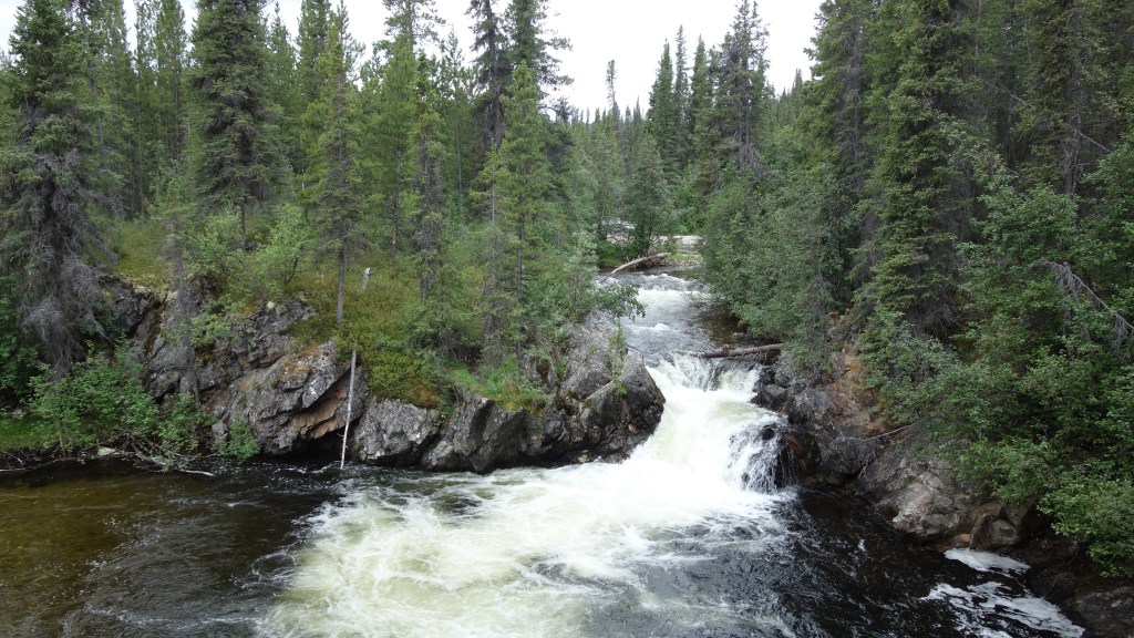 Like a wolly I got carried away and went past a perfectly good camp spot at around 100km. I went on as it looked like there was another promising river spot at 120km but it didn’t amount to anything. Nothing else was looking remotely comfortable or safe either, going wondering off into the woods I’m sure I’d have found a lovely wild spot. But, the bugs get even worse and there’s a good chance of disturbing bears so I talked myself out of that.