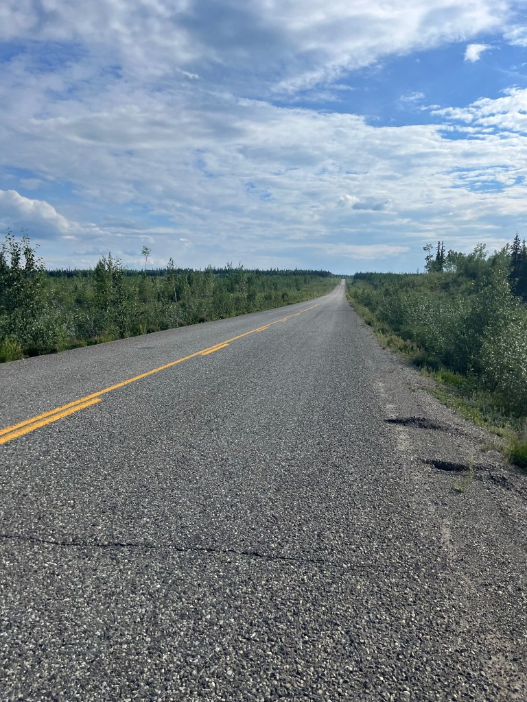 After a productive day off sorting a SIM card, getting the bike looked at and doing next to nothing, I got moving again. I planned to make the next town Watson Lake in three days on the Alaska highway.