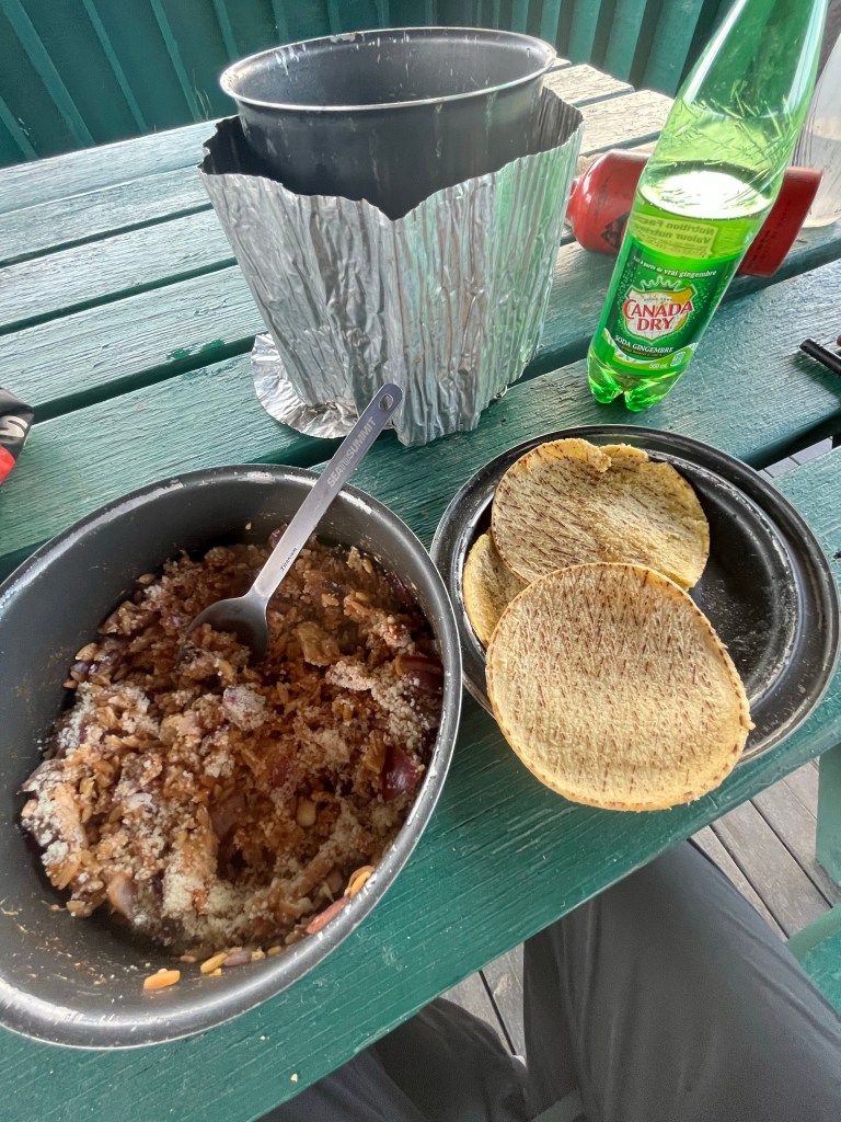 Rolling up to Moose creek campground at around 10:30pm was a massive relief. Setting up camp and doing some dinner then extends the evening but I was comfy and a bit safer than fully wilding it. It also felt productive getting that much distance done, good day.