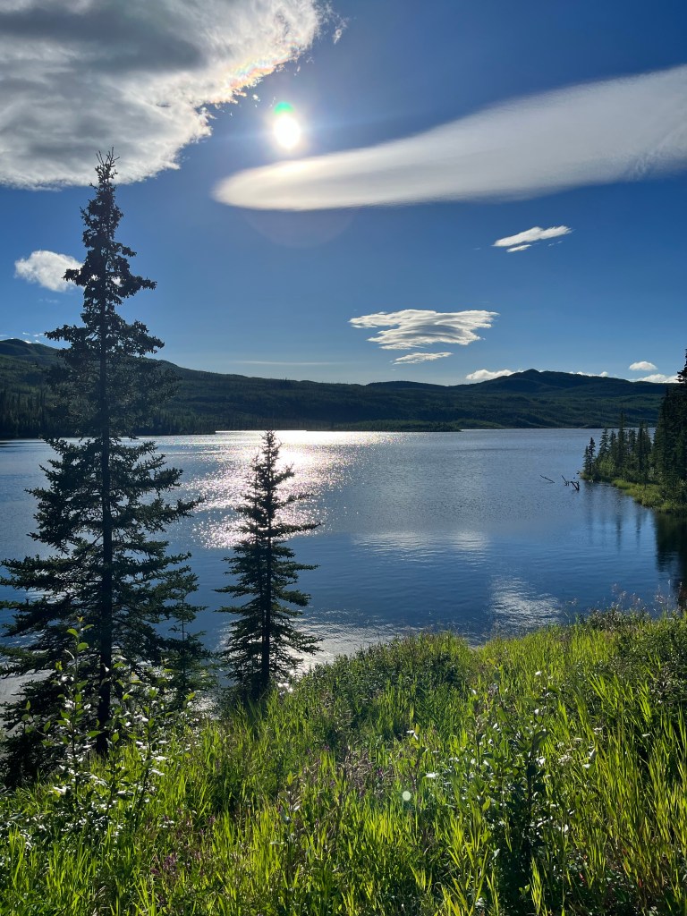 This was still the big lake area in Lower Yukon, the rivers open out into these absolute whoppers, it reminded me of the Lochs in Scotland but bigger. Riding along one called Telsin lake was all day pretty much, it’s easily more than three times bigger than Loch Lomond for perspective. So vast.
