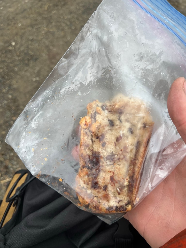 The chef, Vincent, welcomed me in, made fresh coffee and let me use the shelter on the deck to sort my bike out. Perfect. My timing was so good that when I popped back in to say thanks, he whipped a fresh cake out the oven. Enjoyed a slab, had a chat in the nice warm lodge and took one for the road. Arguably a bad start to the day with rain and flat tyres but they’re good problems really and when cake magic like that happens I’ve no complains!