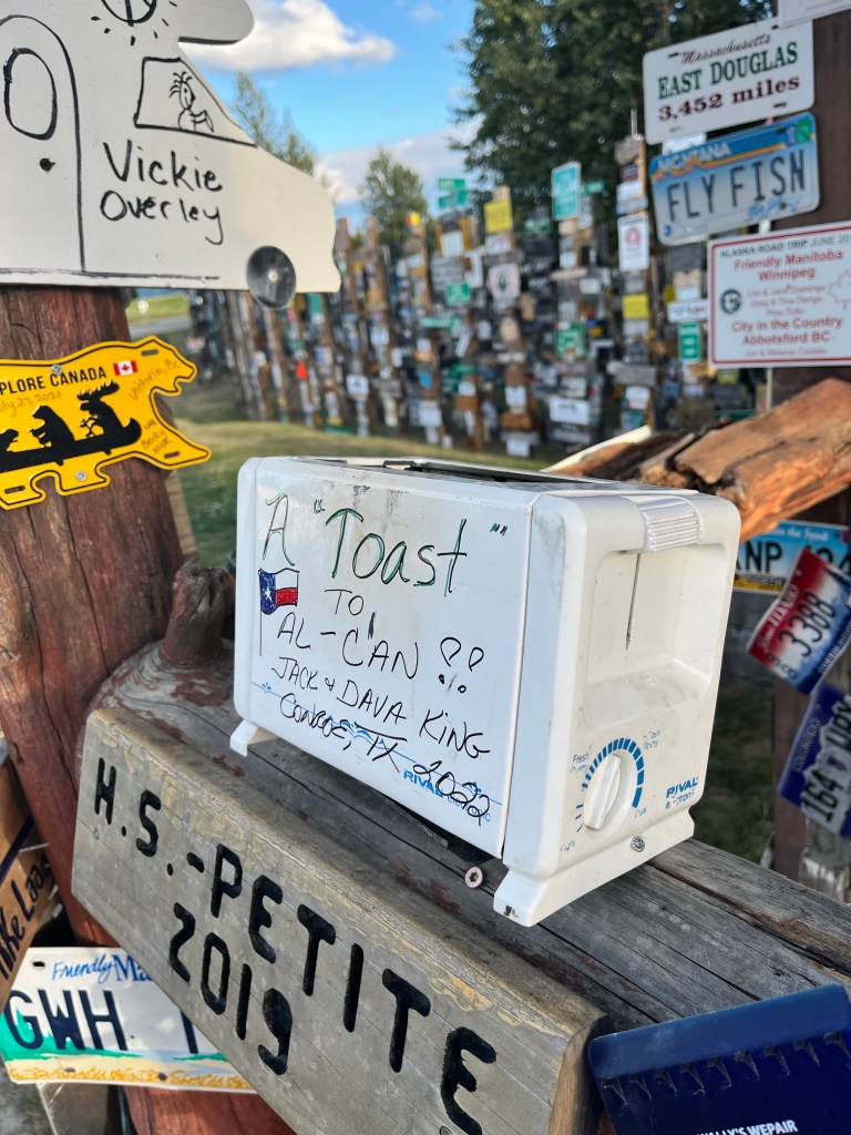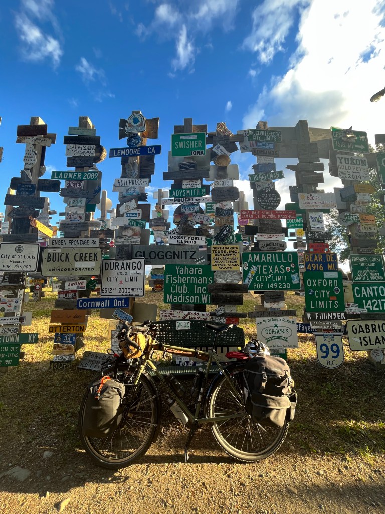 I was quite near Watson Lake now so the next day I had a slow morning and made town early afternoon. Other than a huge sign forest which I loved, it seemed a small place which people just pass through typically. These little Canadian towns are not like American ones in the way of getting a beer at a fun bar. There was nowhere. So it was a nice quiet celebration on my own that evening camped down by the lake. After getting through this long Yukon section with no drama I was a tired but very happy boy.