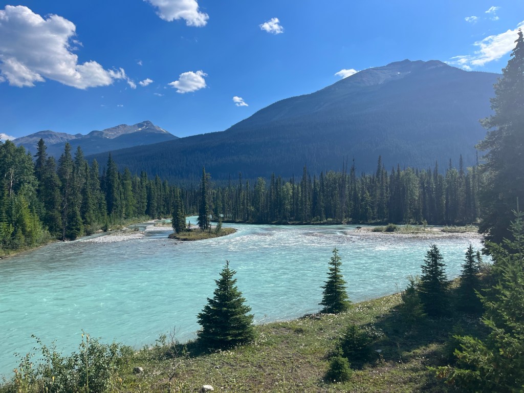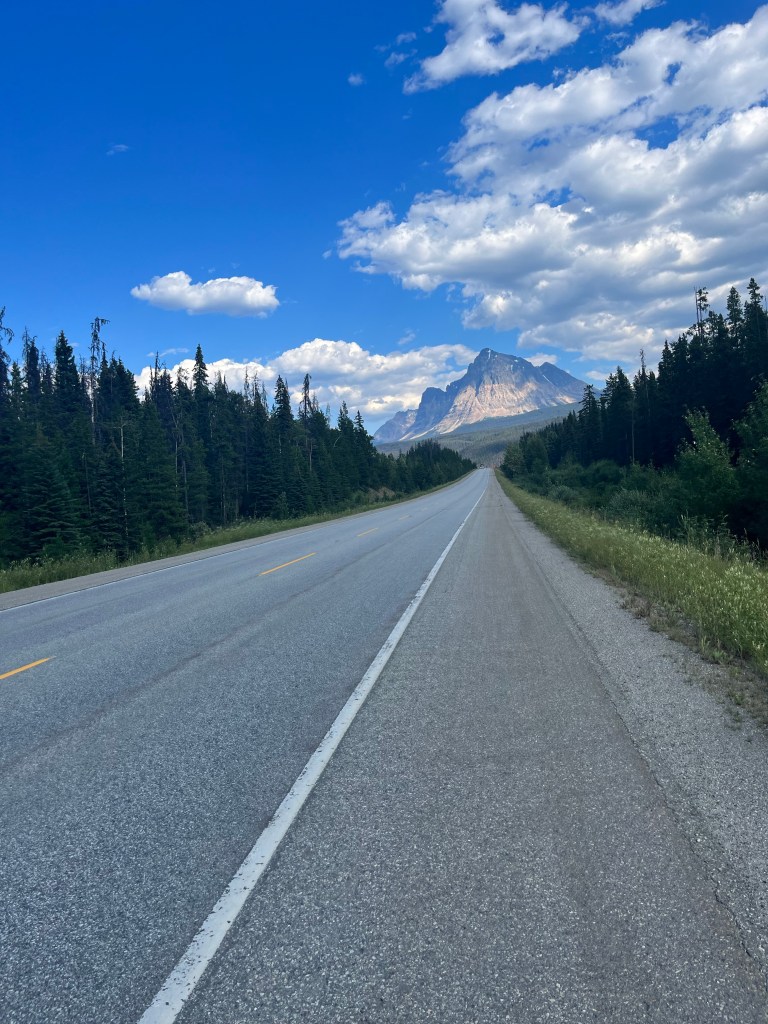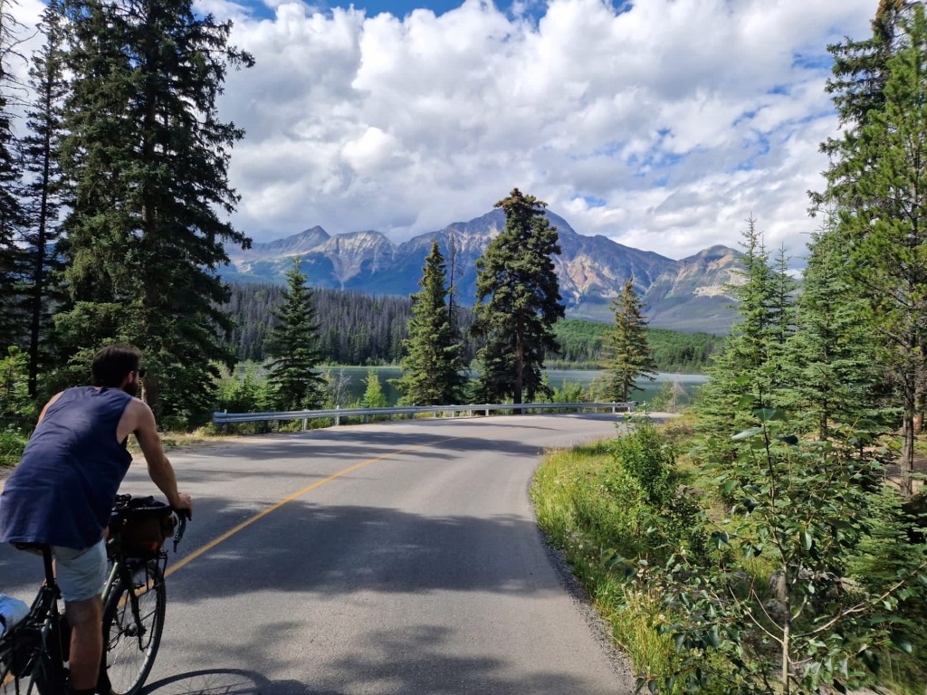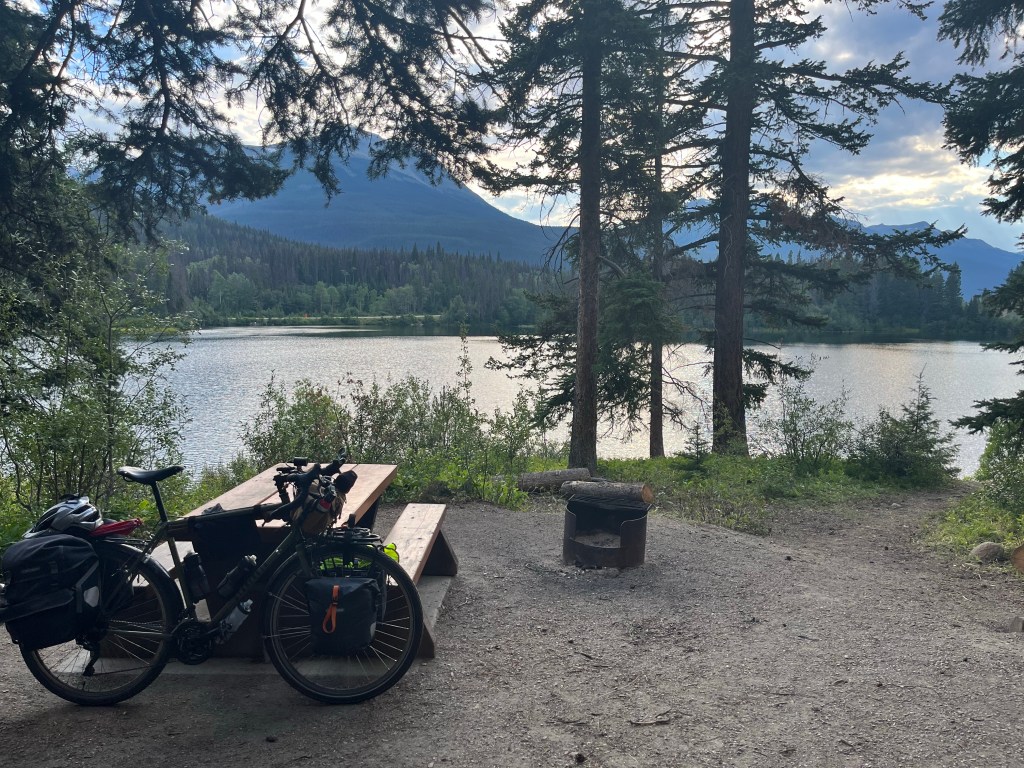 After a few fairly long days on the bike and some roadside camping I was greeted by views of Mount Robson. It’s not always fully on show due to the weather but fortunately I’d landed on a clear day. It was spectacular and it felt like an arrival as I wasn’t particularly far from the town of Jasper. However, with the heat and the hills it took a good effort to finish the day.