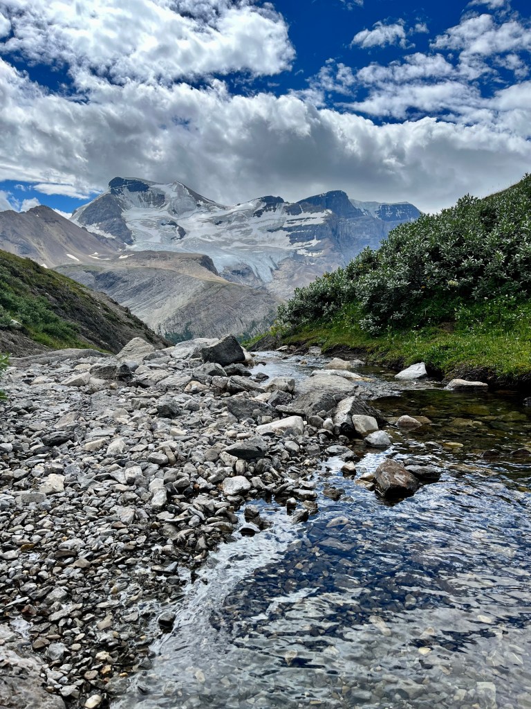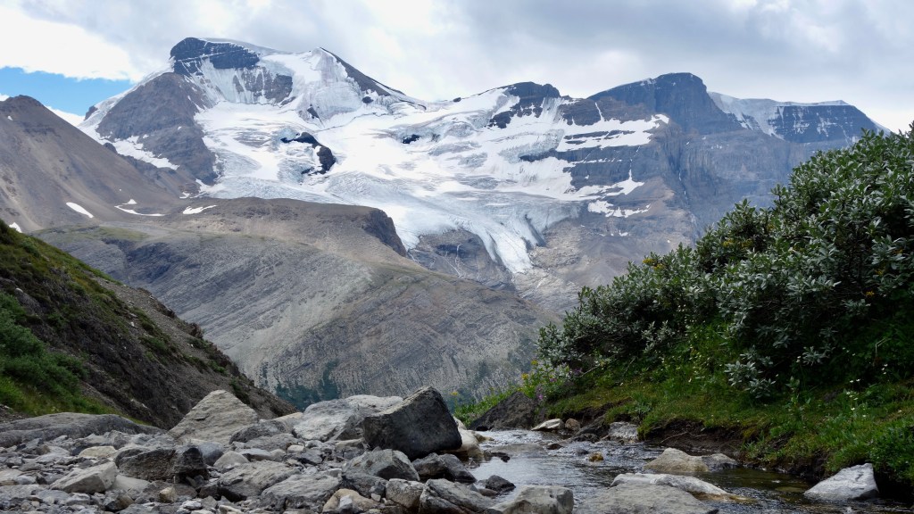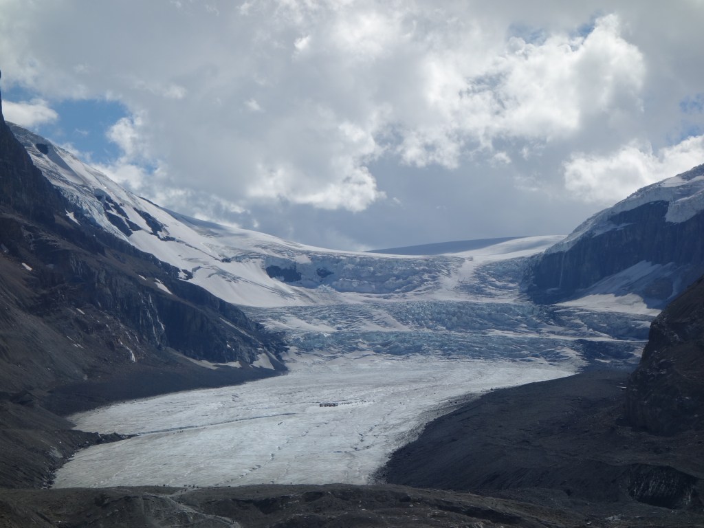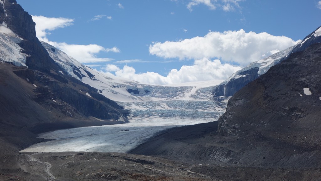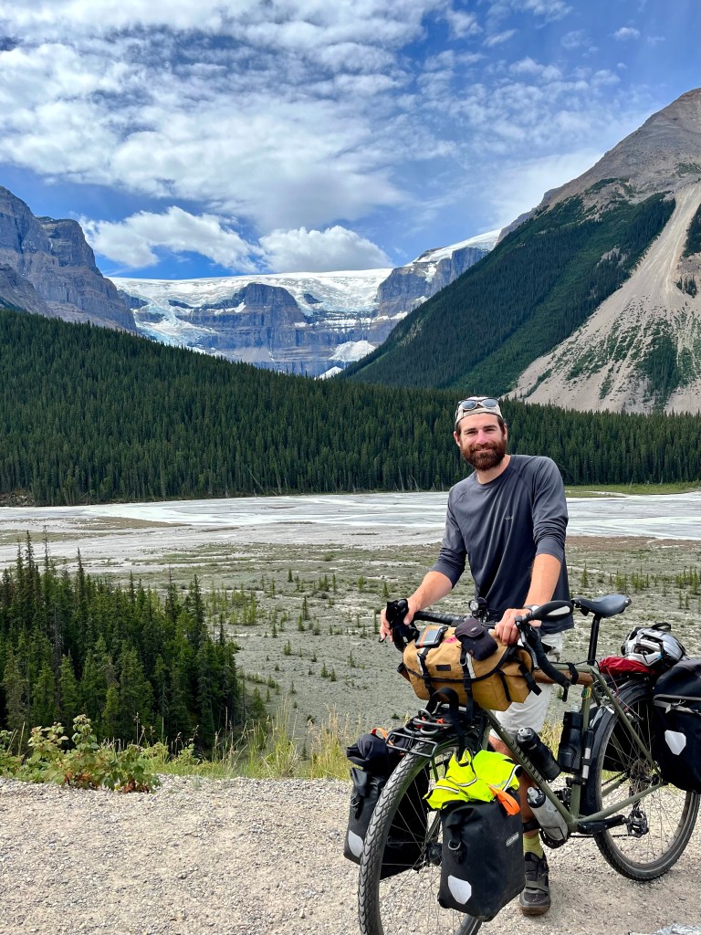 There’s something like 50 glaciers you can see along this section of road and there’s a long stretch near the Columbia Icefield where the valley narrows. They’re big mountains, some of the biggest in the Rockey’s, and with snow and ice on top it was all looking super sexy. I met some other bike tourers here too and and after a walk out to see the glacier up close we all had a few nights at the Icefields Campsite nearby.