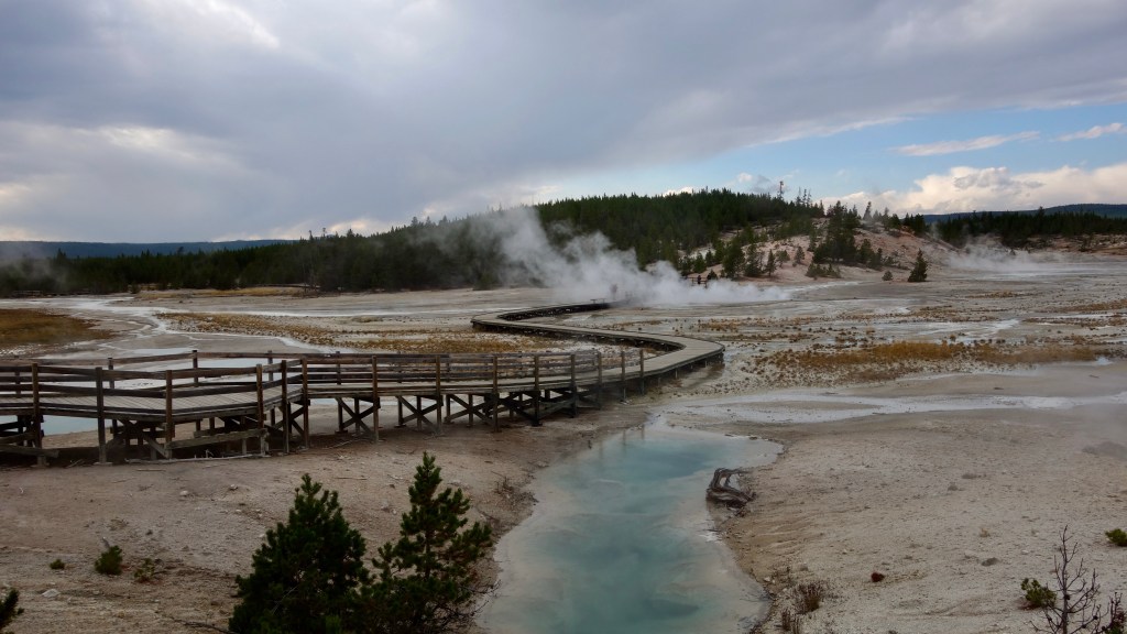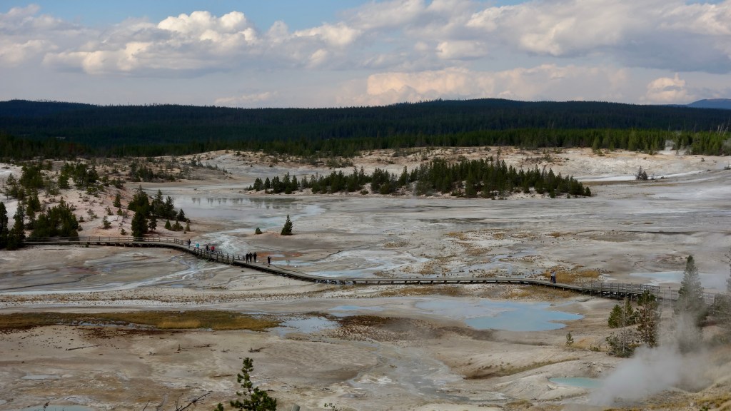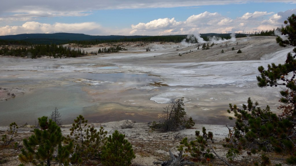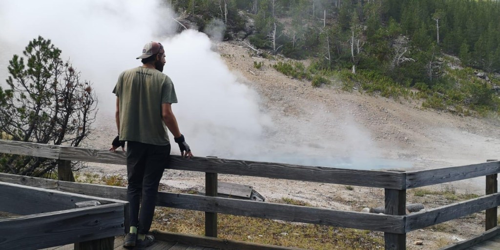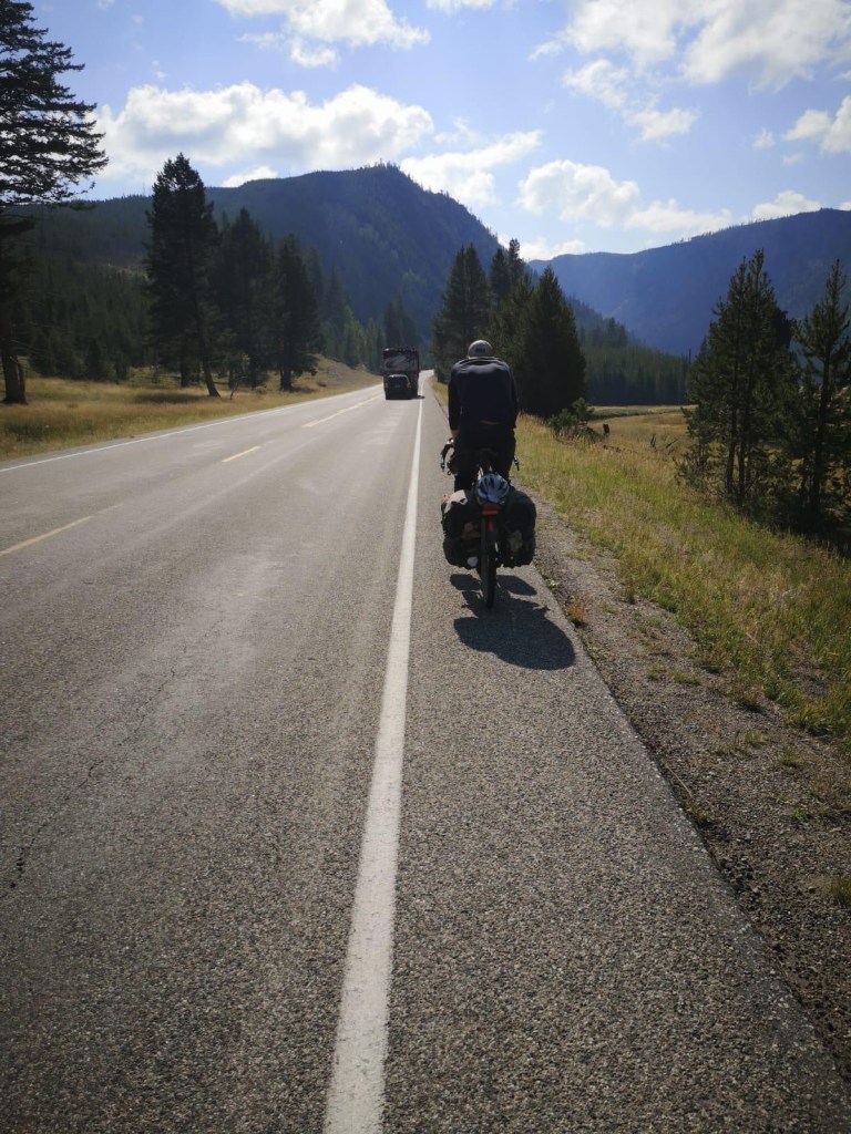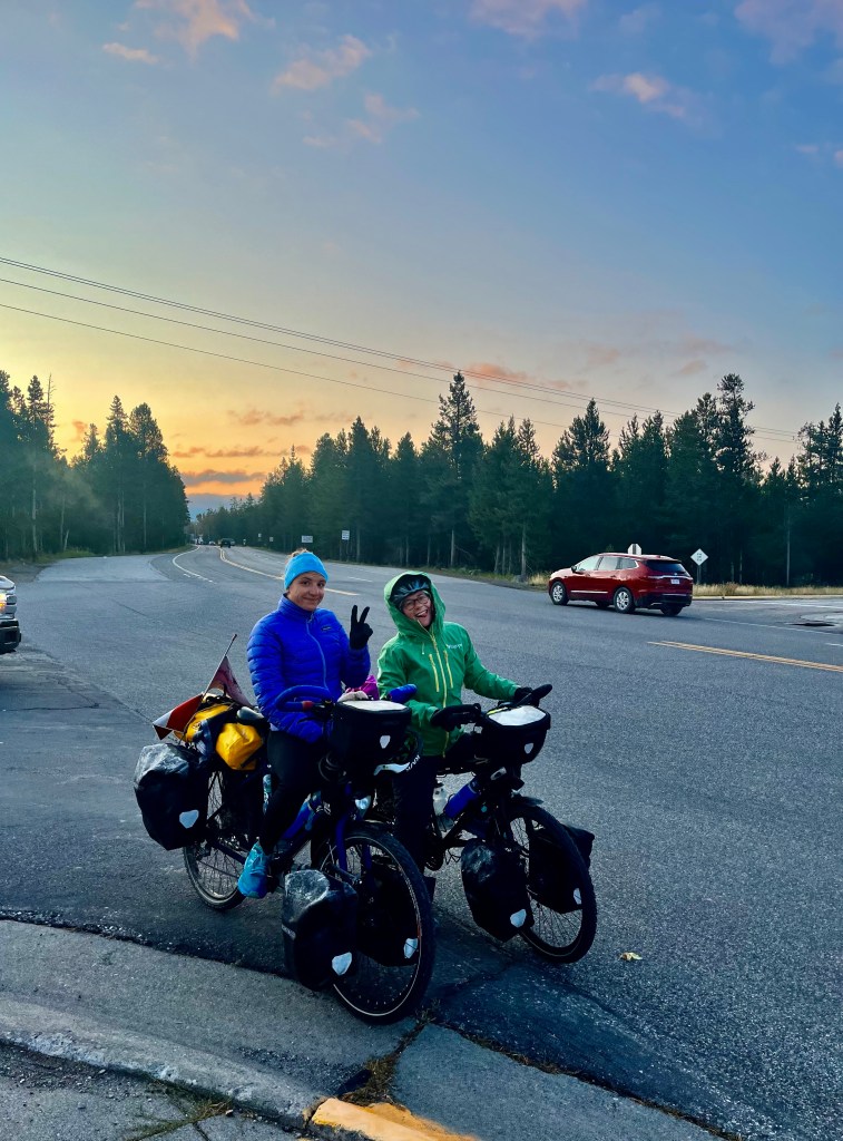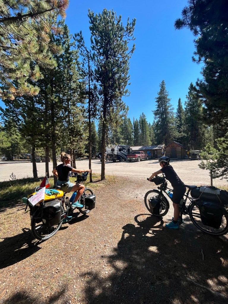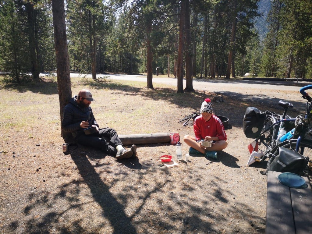 America’s famous Yellowstone National Park is a small detour off the official Divide Trail but it’s somewhere I’ve wanted to visit for a while so for me it had to be done, I took the highway off route for a few hours to one of the park entrance points, West Yellowstone. As it worked out, Hélène and Manon had similar plans and made good progress so we managed to meet again before riding through and visiting the park together which was a pleasure. This area is high up, over 2000m so besides some very cold nights camping, bike touring around the park was outstanding. We made a three day route through the whole park and stopped here and there to see all the mad thermal activity going on. The whole area is basically one super volcano and it’s hard to fully comprehend it all even when working your way around it. Very cool trip and I’d been pushing on a bit prior so it was nice to drop the pace down for a few days and enjoy slow mornings in the campsites, cruising the nice roads and generally being more of a tourist.